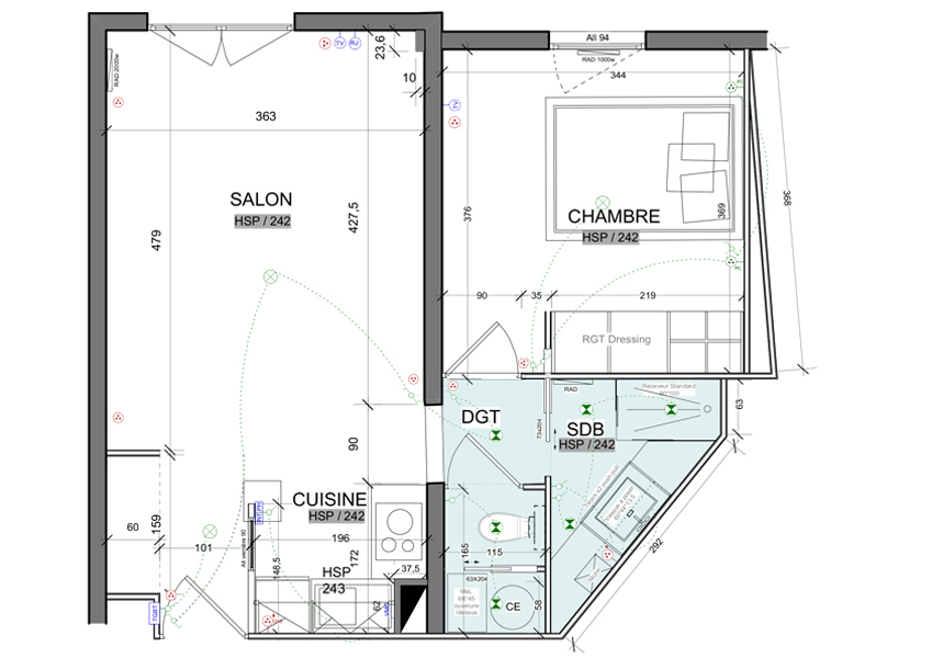 - Plans détaillés : j’élabore des plans plus précis avec mesures exactes et spécifications techniques (plan électricité, plomberie, mobilier sur mesure)